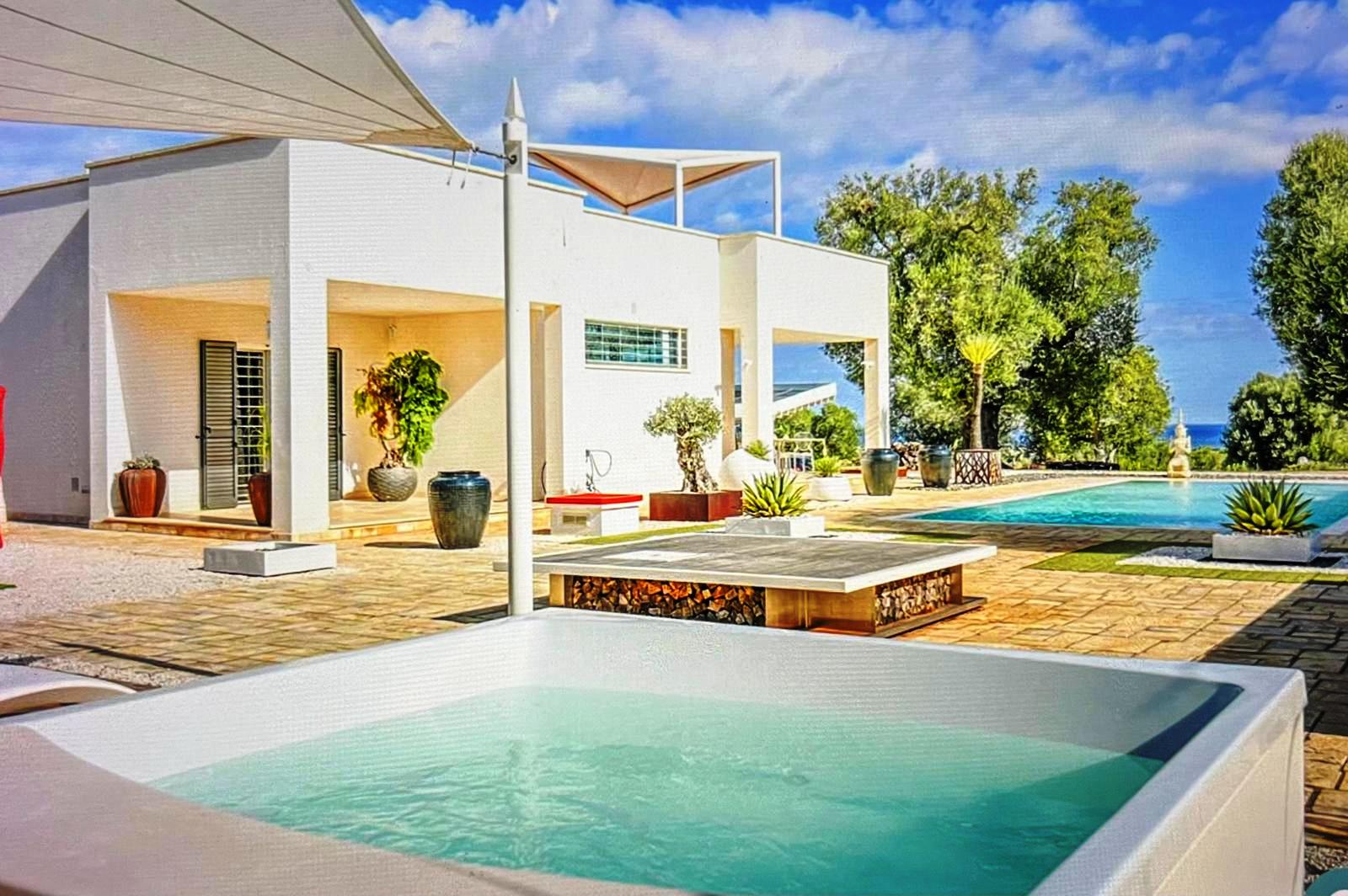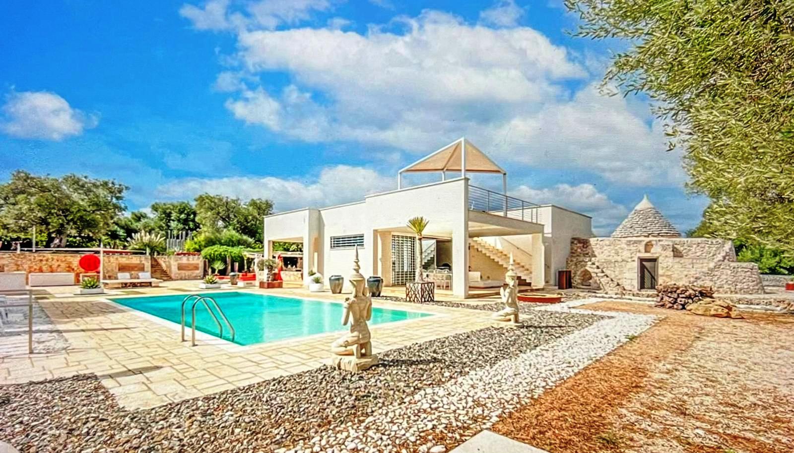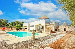 In vendita nel meraviglioso agro di Carovigno, in una posizione elevata e panoramica con vista mare, prestigiosa villa con classe energetica A++ con attiguo trullo progettata e realizzata da un eccellente studio di architettura che ha utilizzato solo materiali all’avanguardia e rifiniture di alto pregio.