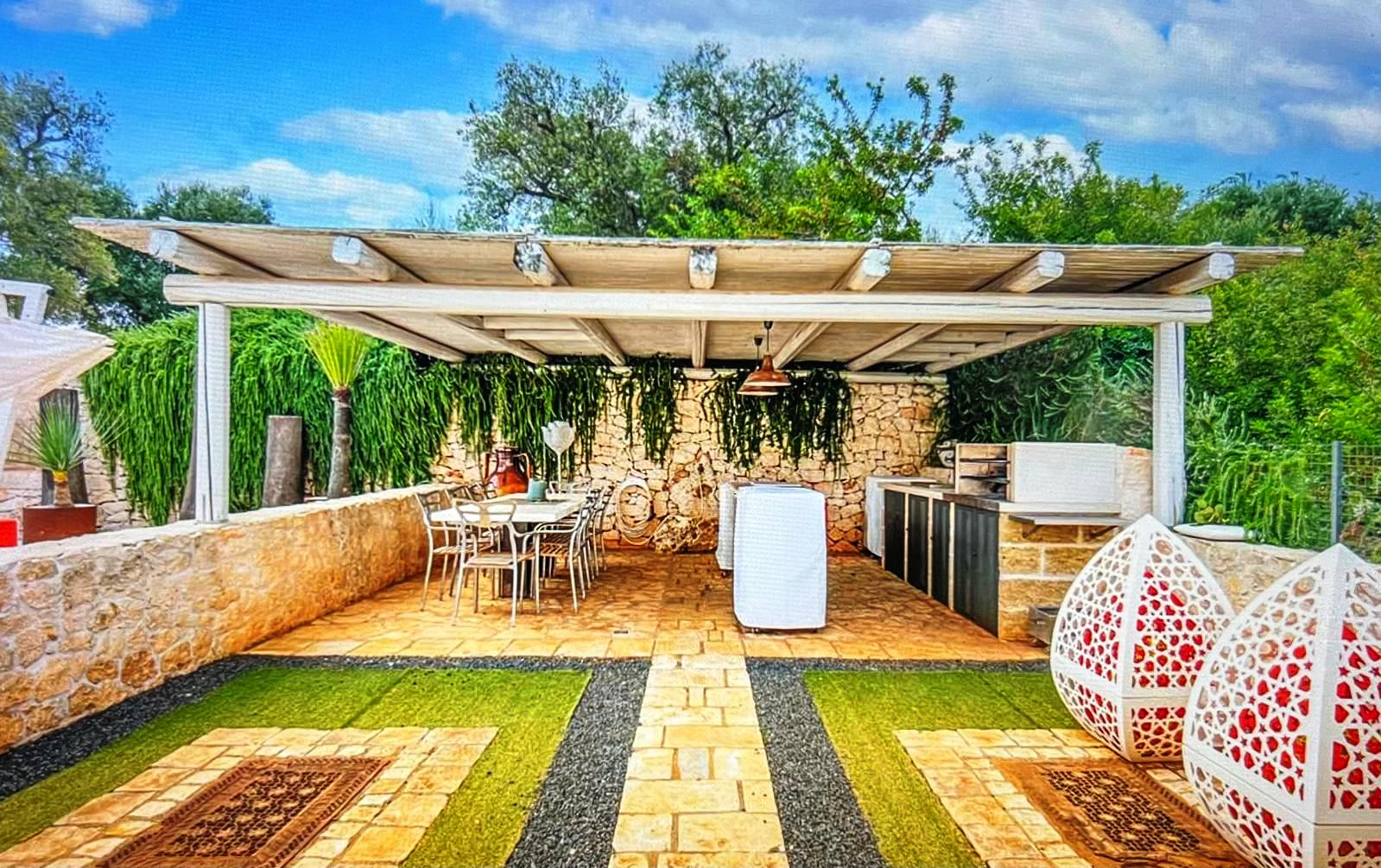 Complesso di trulli e lamie completamente ristrutturato con piscina nella stupenda campagna di Ceglie Messapica. L’immobile è dotato di tutto il moderno comfort ed è adatto per viverci tutto l’anno e è composto da soggiorno, ingresso, cucina, zona pranzo, 4 camere da letto, 3 bagni, un locale tecnico, cucina esterna con patio, area parcheggio, piscina con spiaggetta e doccia esterna. Per ulteriori informazioni o per fissare un appuntamento per una visita, non esitate a contattarci.