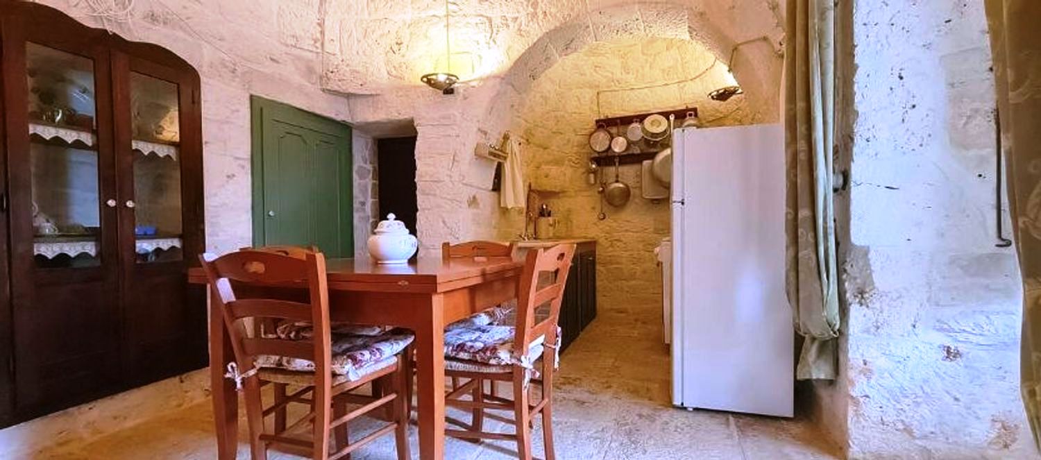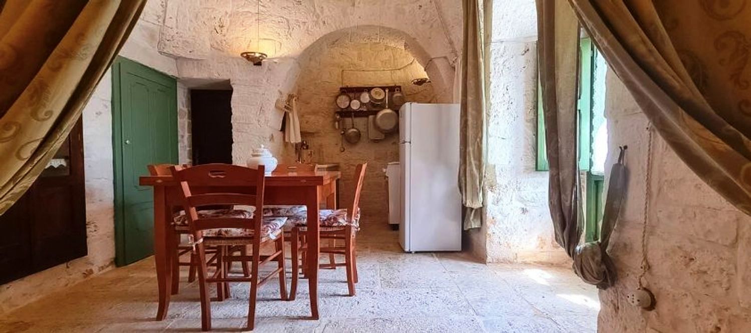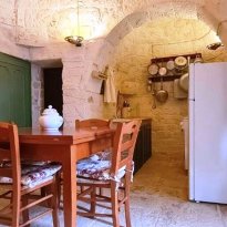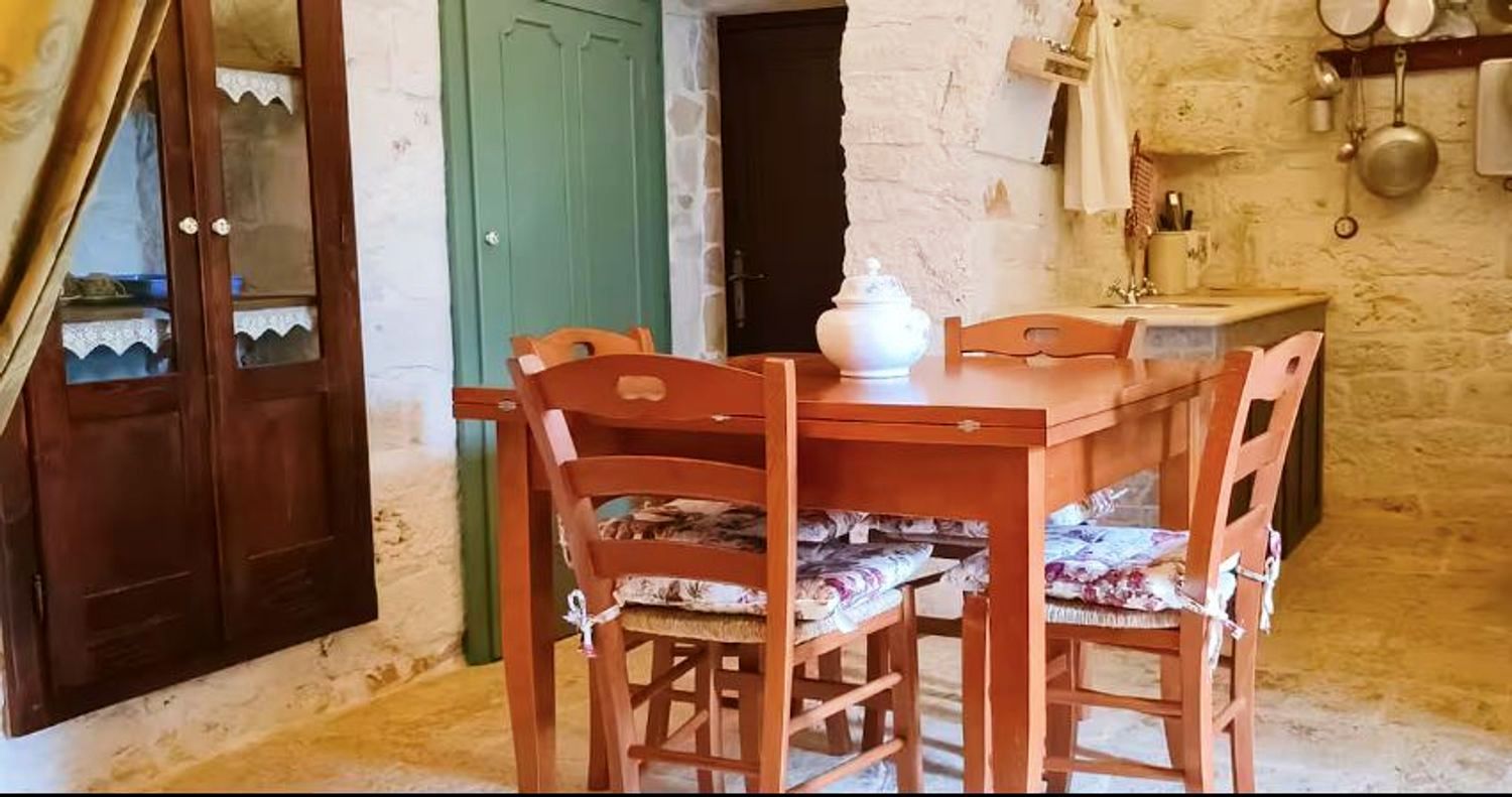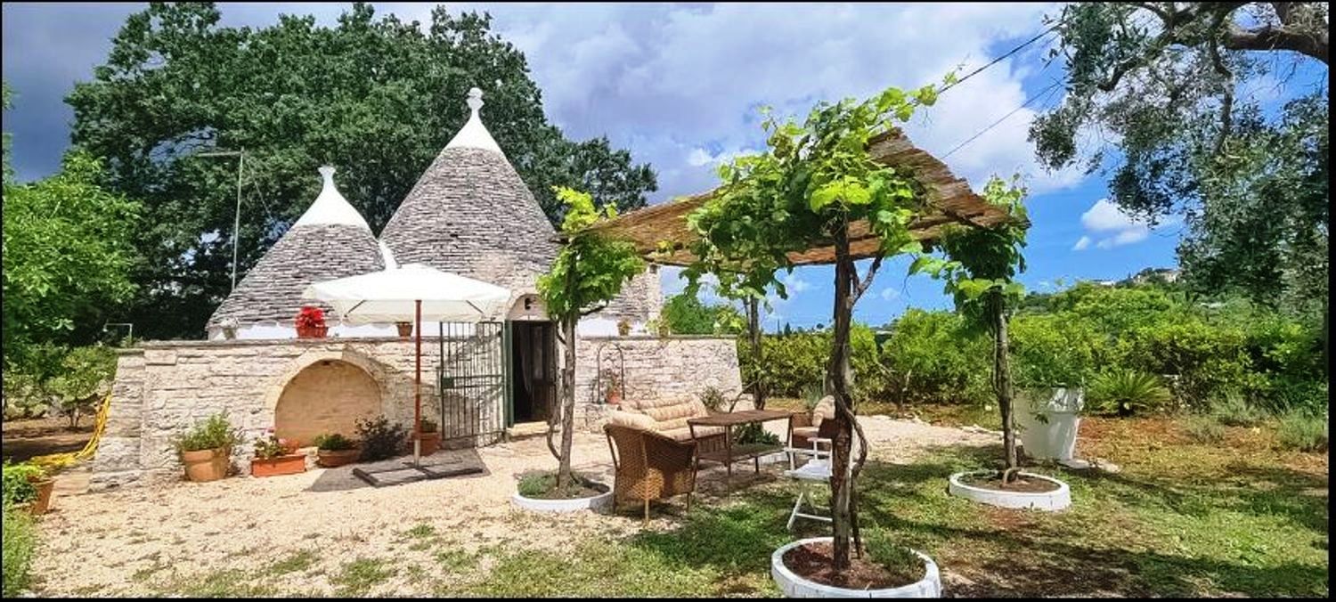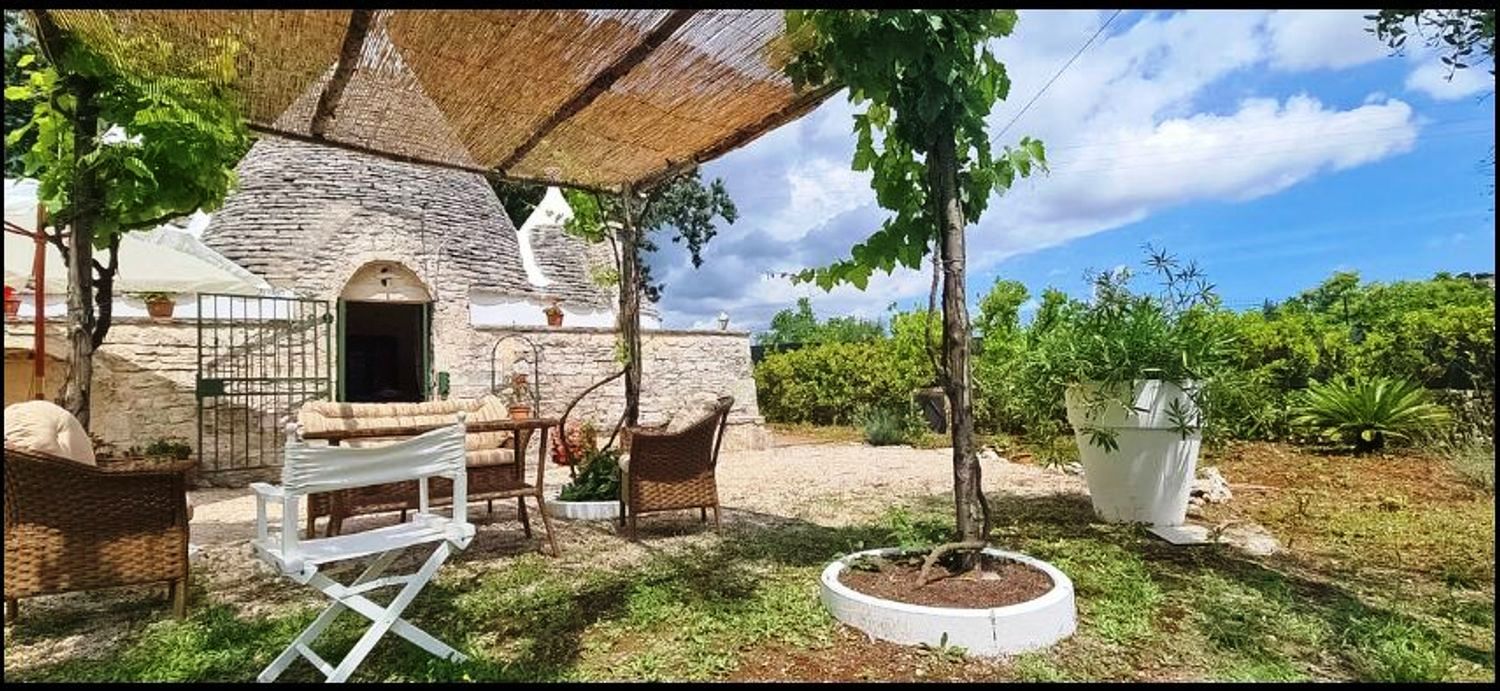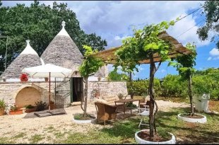 Puglia, in campagna della cittadine di Ceglie Messapica, capitale della gastronomia pugliese, in una delle contrade più residenziale e più ambite a soli 1 chilometro dal centro cittadino, si erge questo antico trullo immerso in oltre 7000 m² di querce ed ulivi, gli attuali proprietari trent’anni fa acquistarono questo podere attratti dalla bellezza della zona e dalle linee semplici, vere del trullo esistente.