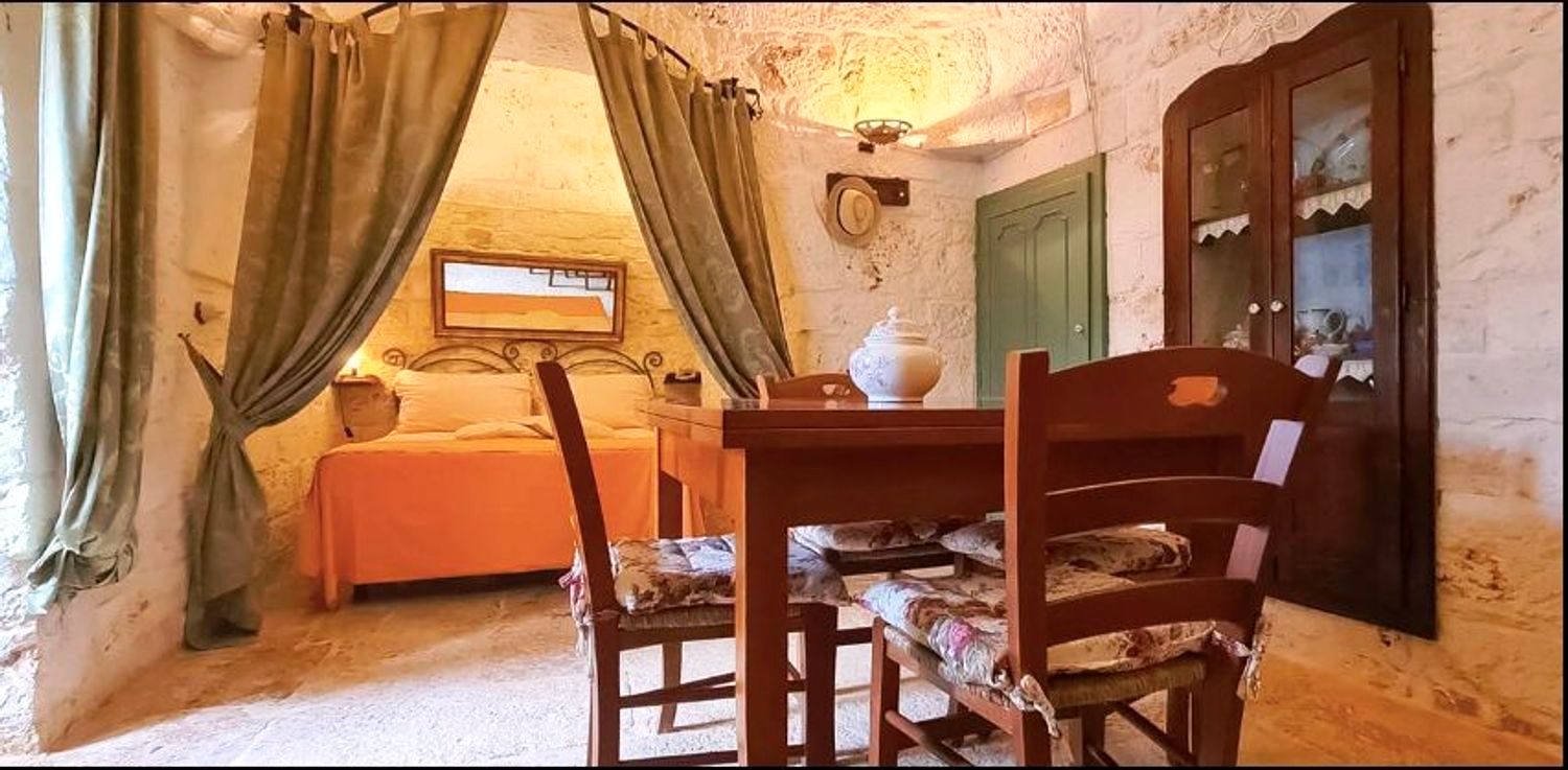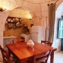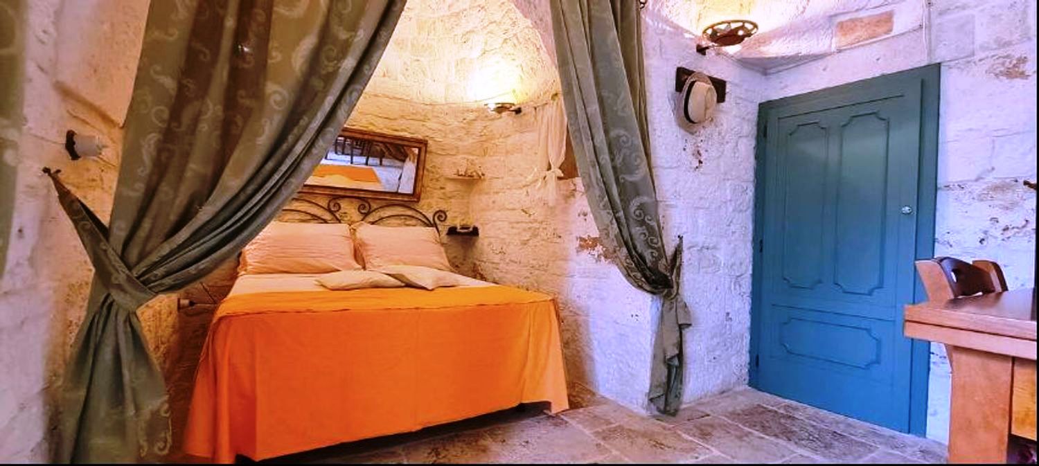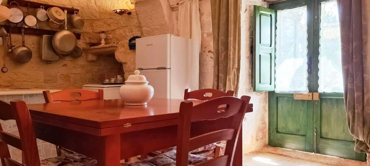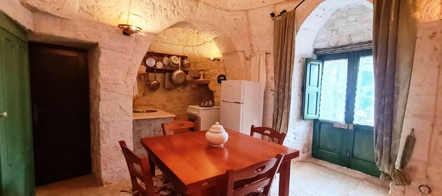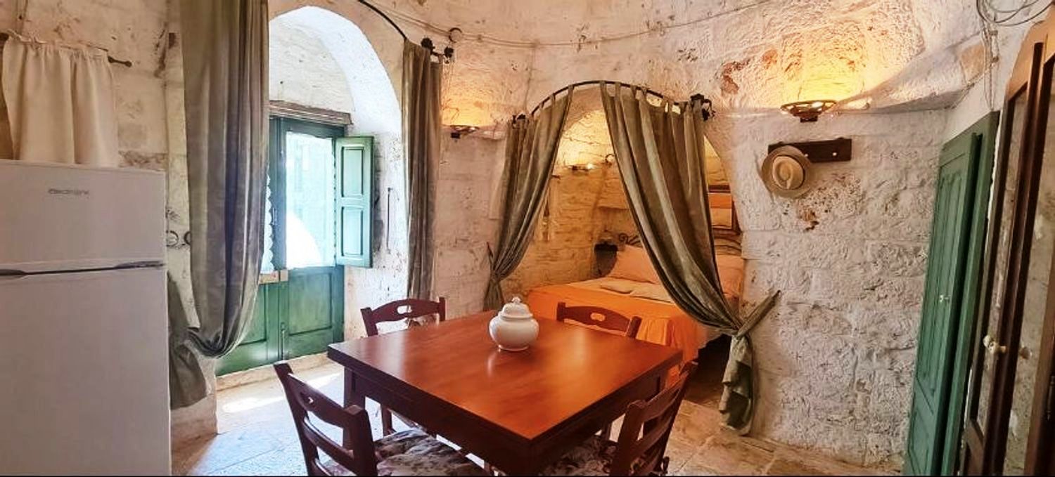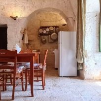 Nel religioso rispetto della architettura contadina dell’epoca fu recuperato e riportato a nuova vita, all’interno il meraviglioso pavimento a “chianche” antiche originale, i coni portati a pietra faccia vista, infissi e nicchie tutte in legno dove i colori si mescolano in un incredibile gioco cromatico che riporta ai tempi passati quasi a riuscire a ricodarne gli odori e i sapori di chi li ha vissuti 200 anni fa.