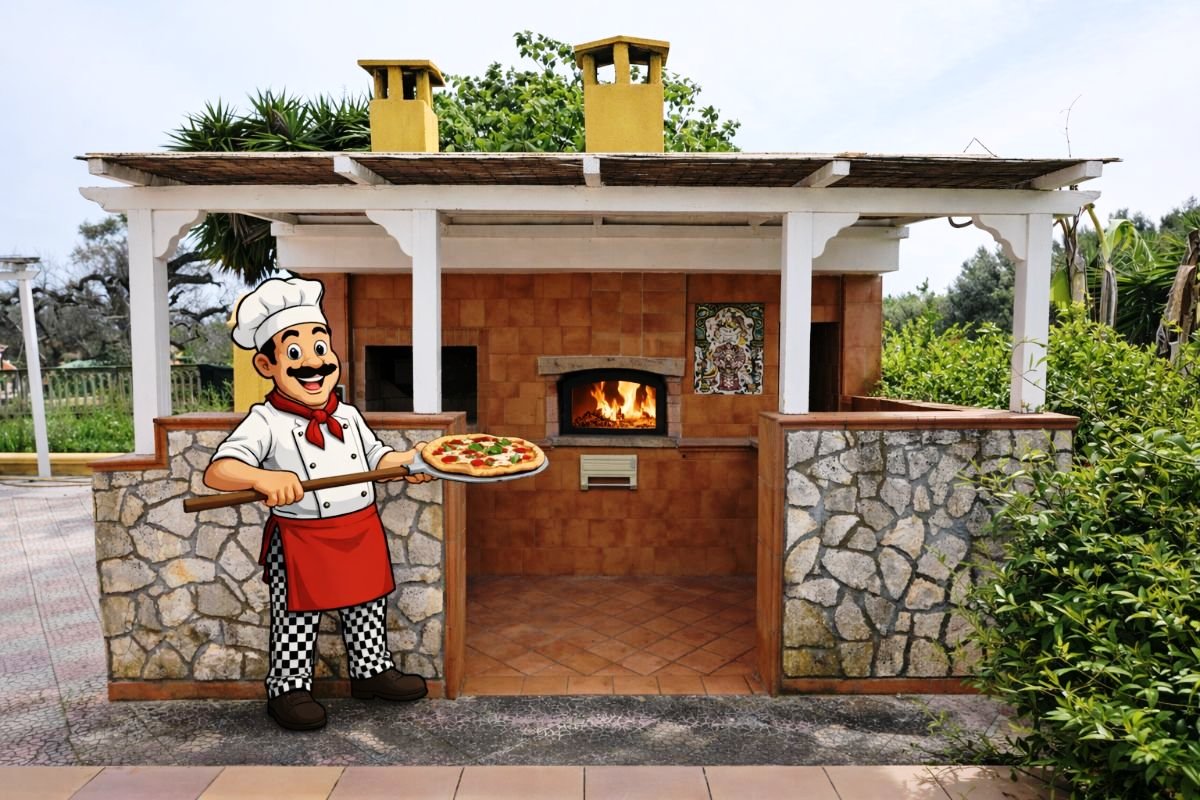 All’esterno, la piscina e il forno a legna rendono la proprietà ideale per vivere appieno gli spazi all’aperto durante la bella stagione, tra cene conviviali e momenti di relax.