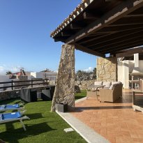 La terrazza panoramica sul tetto è senza dubbio uno dei luoghi più speciali della casa. Qui potrete godere di una vista mozzafiato sulla costa, culminante nei tramonti che colorano l'orizzonte di calde tonalità: un momento quotidiano di pura bellezza.