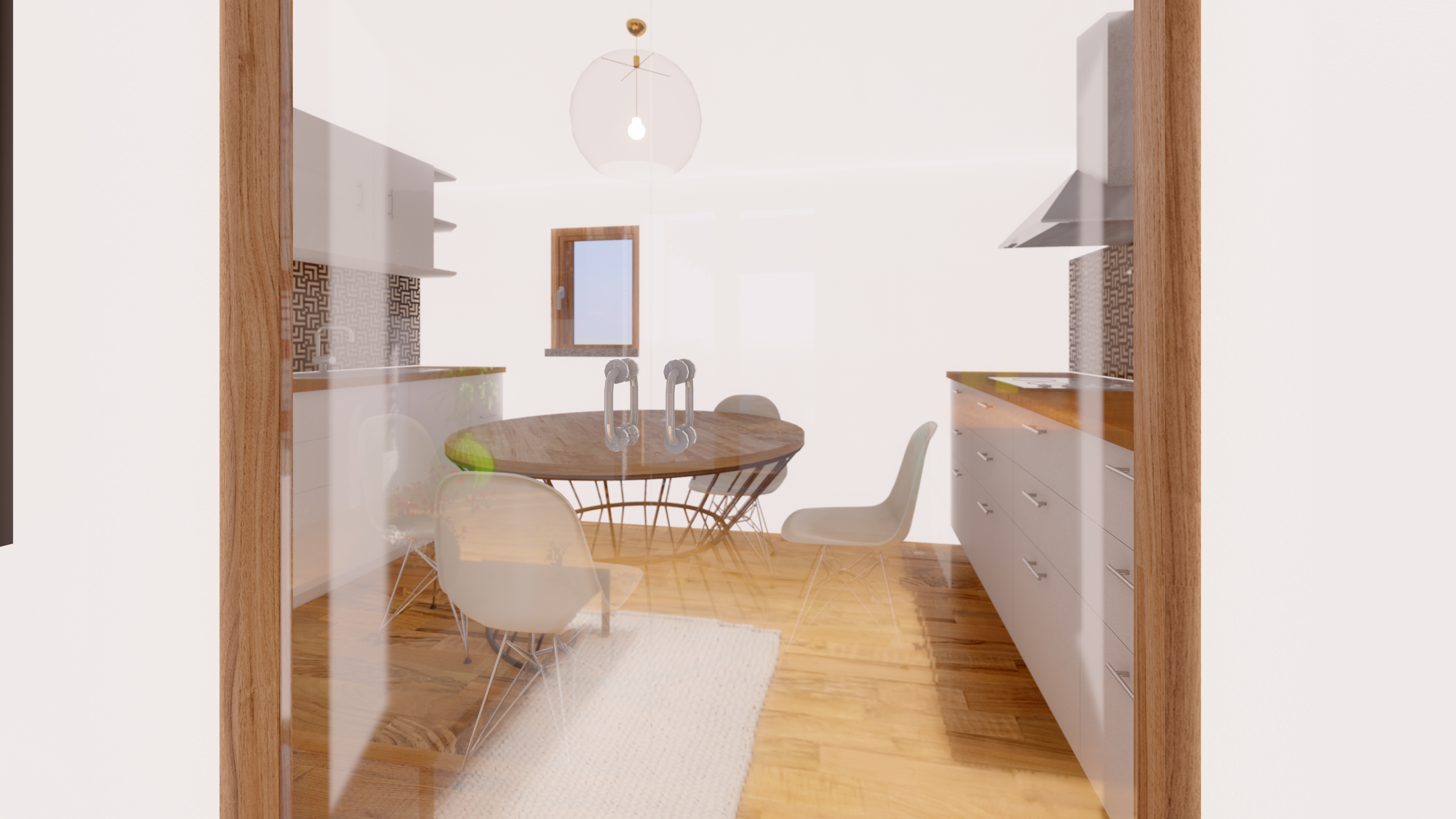 Cucina completamente attrezzata con elettrodomestici moderni