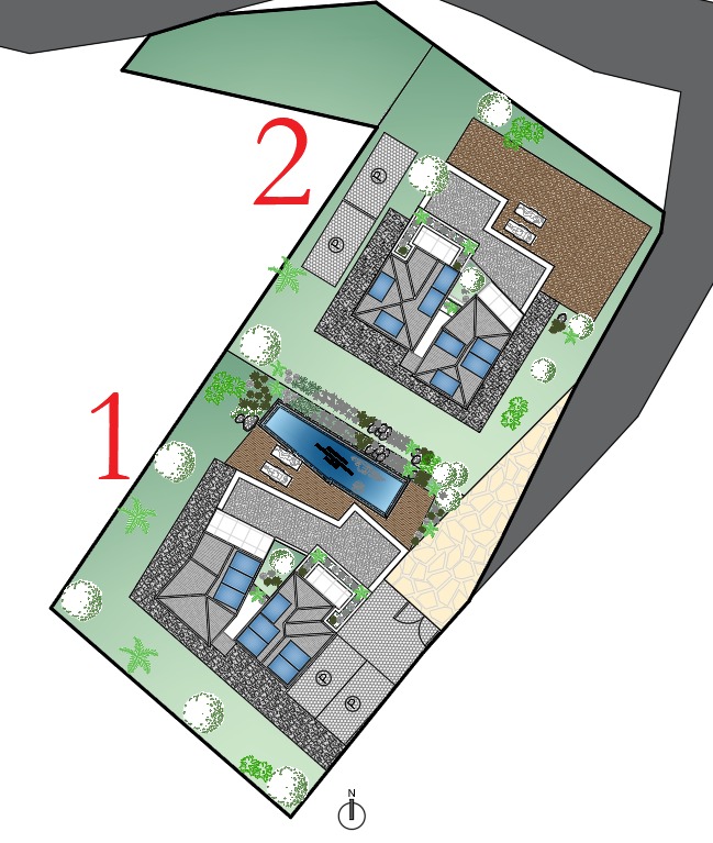 Le case sono state progettate con un occhio di riguardo alla luce, alla sostenibilità e alla qualità della vita. Con circa 120 m² di spazio abitativo e una disposizione intelligente, le ville dispongono di tre spaziose camere da letto e cinque stanze in totale, che le rendono perfette per le famiglie, per le vacanze o per accogliere gli ospiti.