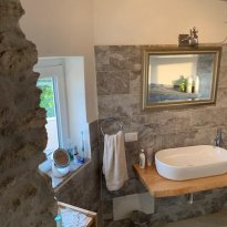Questa graziosa casa di paese dispone di tre ampie camere da letto, di cui una con bagno privato, un grande salone, un bagno di famiglia e una cucina completamente attrezzata con frigorifero, forno, microonde, lavastoviglie, piano cottura e armadi a muro. Dalla cucina si accede a un'ampia terrazza soleggiata esposta a sud-ovest con pavimentazione in granito e vista superba. La pavimentazione di tutta la casa è rivestita con grandi piastrelle moderne di colore neutro. Il bagno principale della famiglia è stato splendidamente ristrutturato con piastrelle in marmo travertino. La terrazza gode di una magnifica vista sulla valle e, essendo esposta a sud-ovest, riceve il sole tutto il giorno. Sulla terrazza si trova un ripostiglio con un nuovo boiler, una lavatrice e spazio sufficiente per riporre i mobili da giardino e i bidoni per la raccolta differenziata. Inoltre, c'è un'area coperta separata che ospita anche un grande serbatoio d'acqua, una pompa dell'acqua e un ampio spazio di stoccaggio con una cantina asciutta al di sotto. La casa dispone di una buona connessione wifi ed è attualmente completamente arredata. L'arredamento è aperto alla negoziazione.