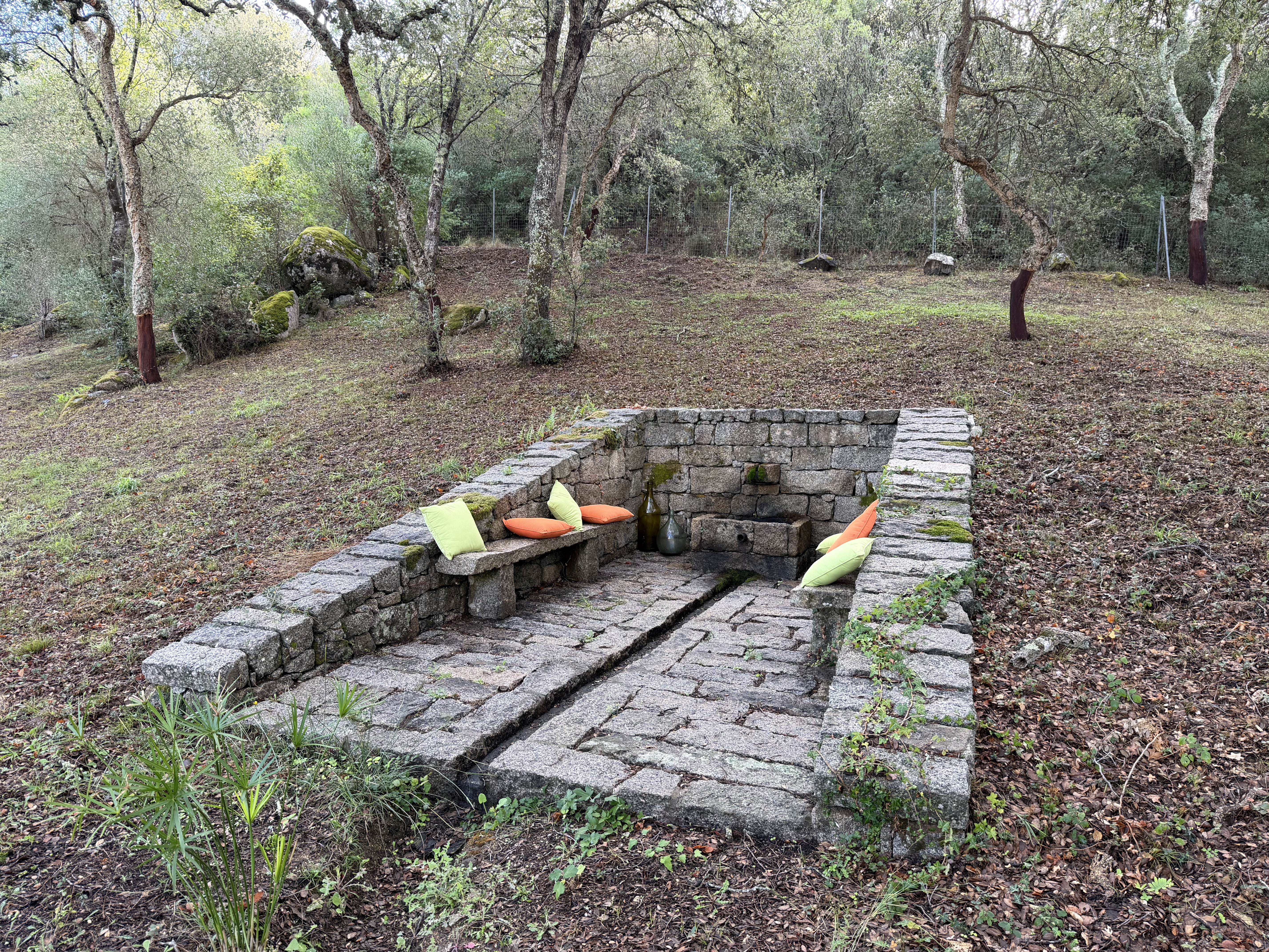 Il tutto è immerso in un terreno di 2 ettari, arricchito da una fontana e da un suggestivo recinto in muretto a secco, che richiama l’aspetto dei vecchi ovili galluresi. La proprietà dispone inoltre di un pozzo.