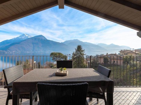 Lago di Como, Musso - In posizione soleggiata con spettacolare vista lago, all’interno di una casa di sole 5 unità abitative, proponiamo magnifico attico di 100 m2 commerciali che occupa l’intero piano, con travi in legno a vista e una splendida vista sul lago. .