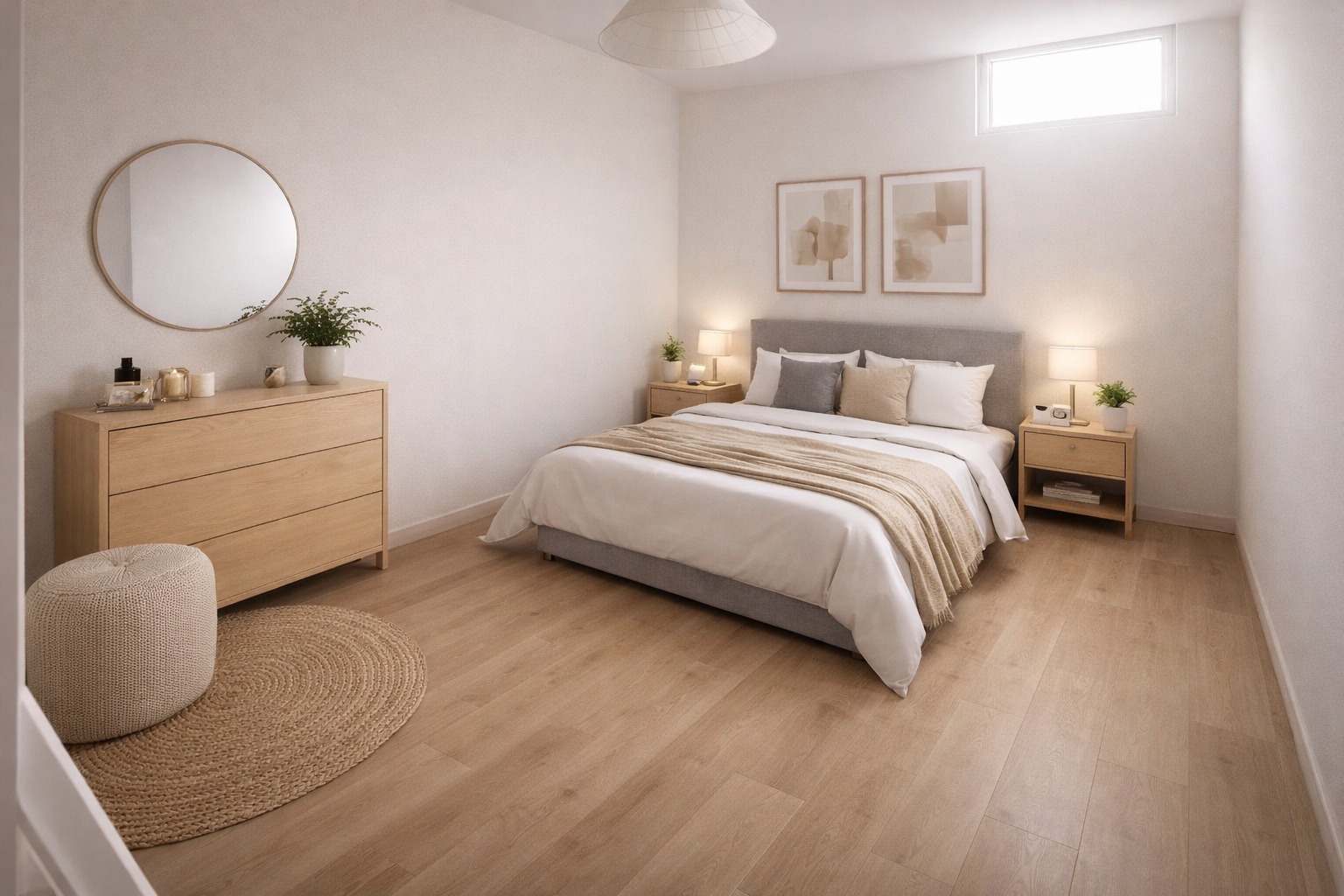 Primo piano con luminoso soggiorno, ampia camera da letto, bagno e angolo cottura