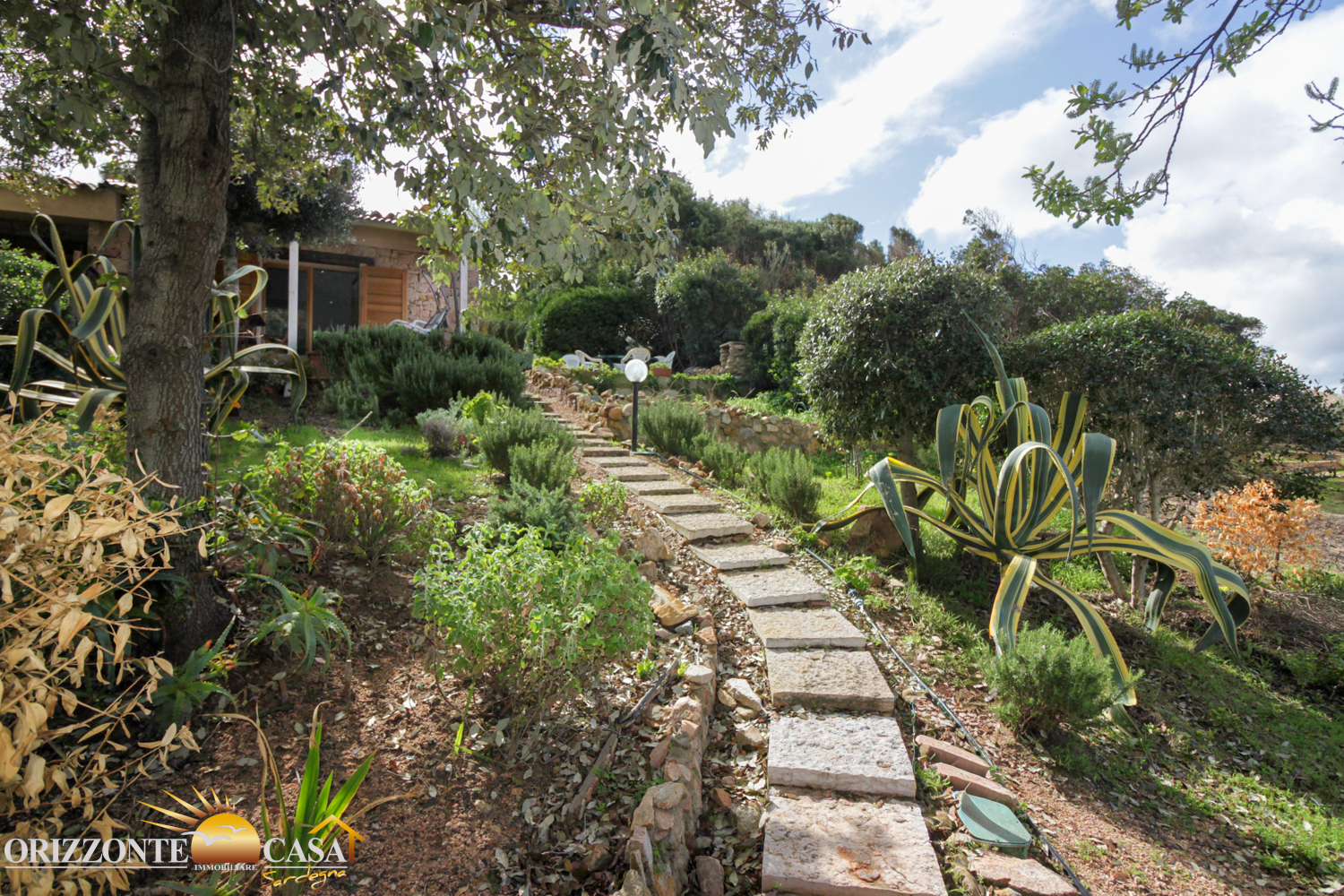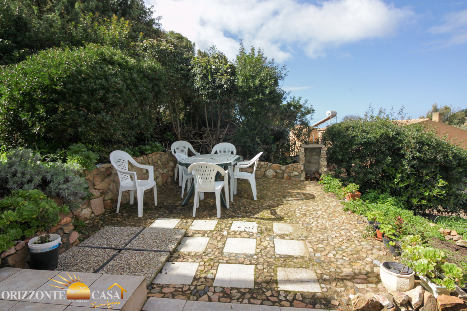 Gli spazi esterni sono stati accuratamente progettati per sfruttare al meglio il clima mediterraneo. Il giardino e la veranda offrono diversi luoghi per rilassarsi, circondati dalla natura e dal silenzio. Un posto auto privato completa la proprietà.