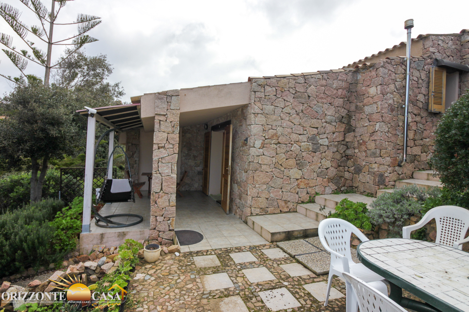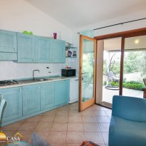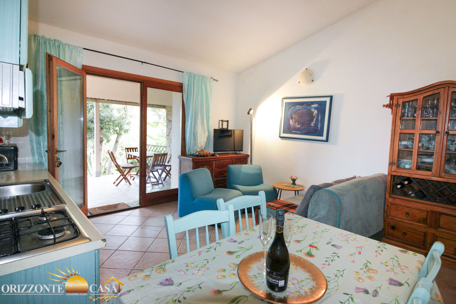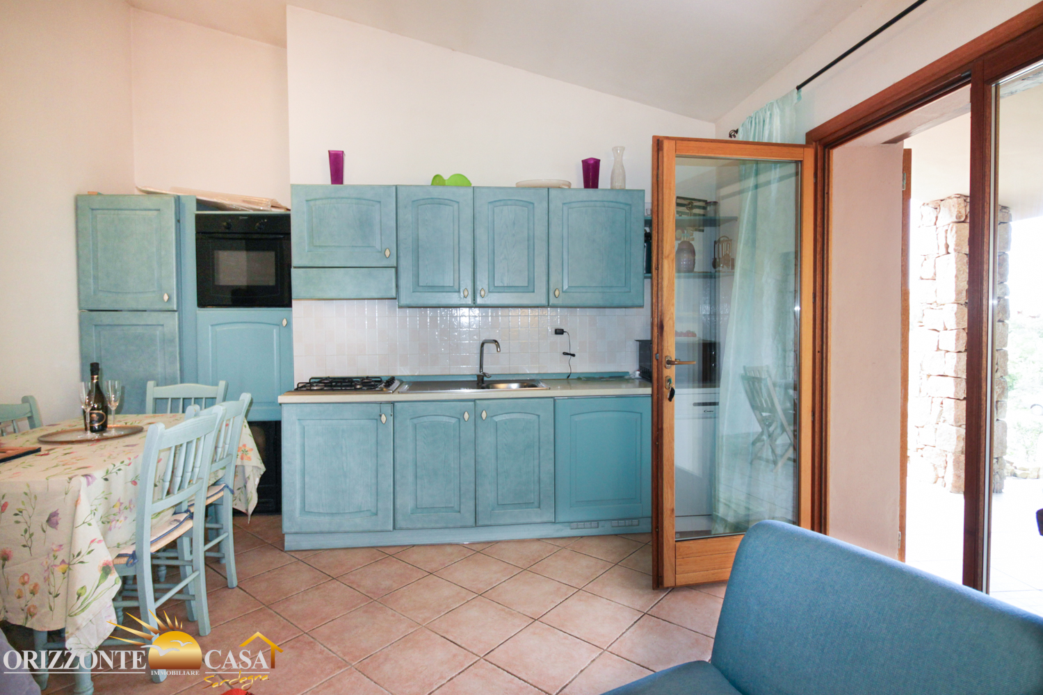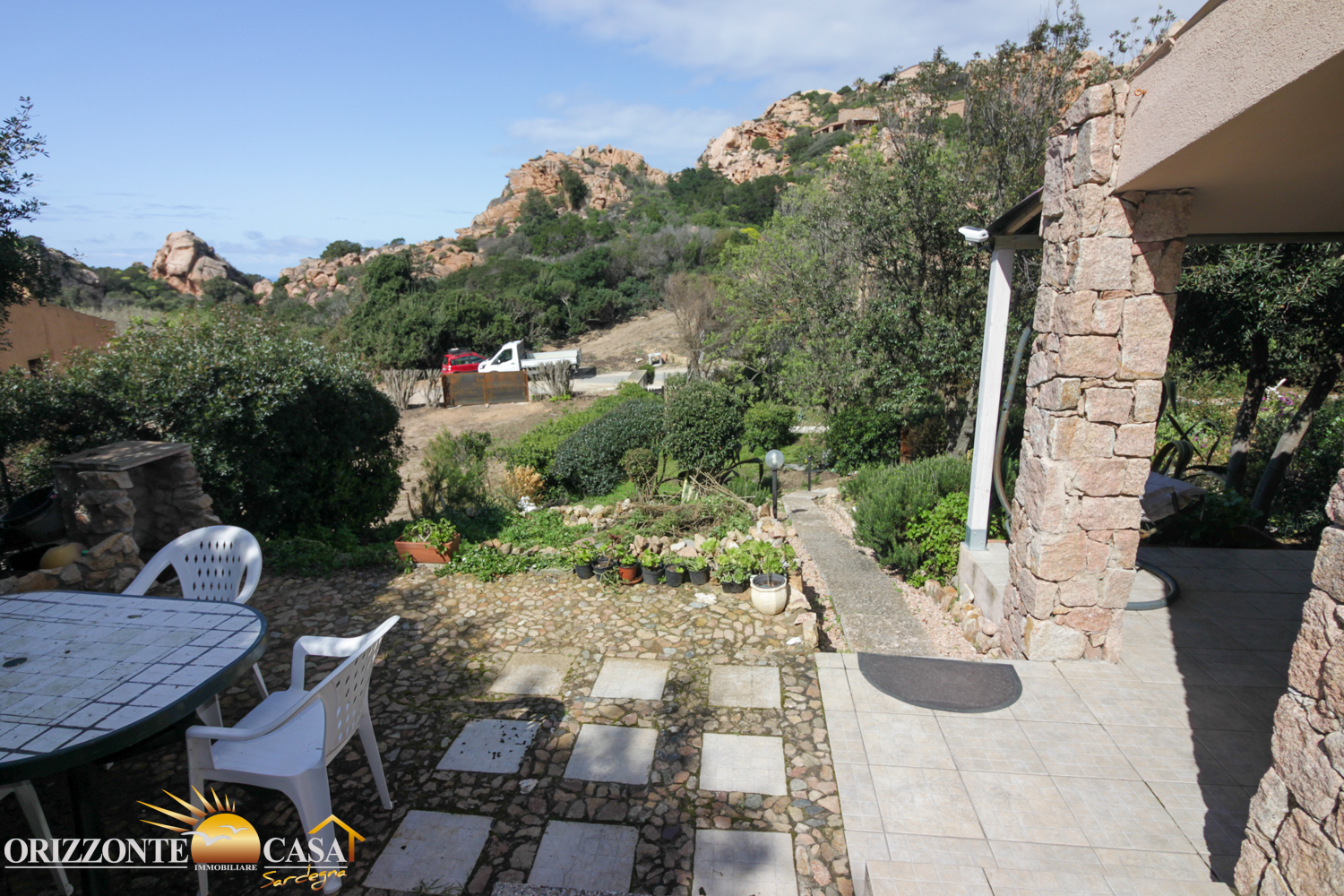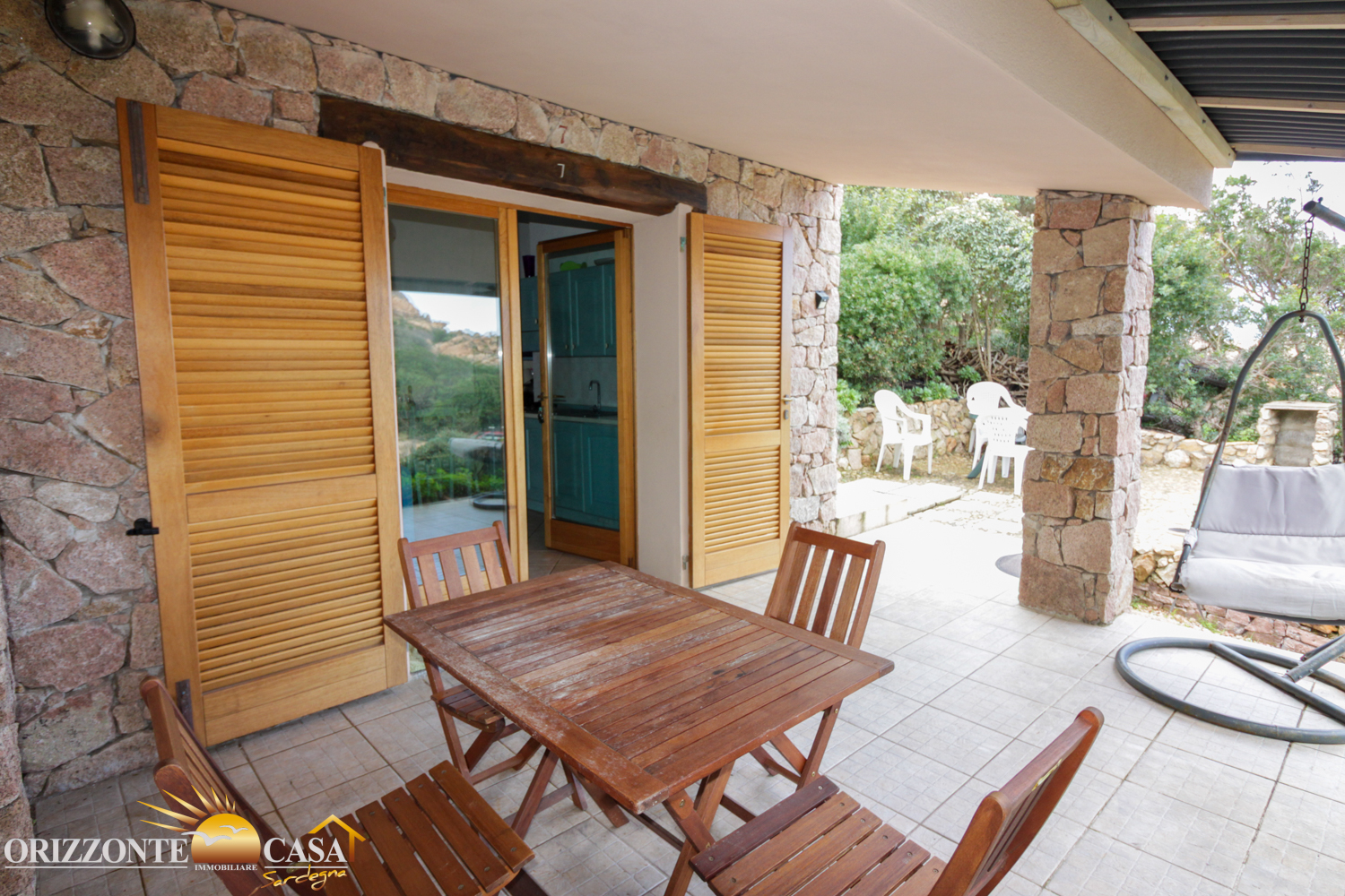 La proprietà è completamente arredata e pronta all'uso. Entrando, si viene accolti in una luminosa zona giorno con cucina a vista, che sfocia senza soluzione di continuità in una veranda coperta. Da qui si domina il giardino e le impressionanti formazioni rocciose che rendono questa regione così unica. La veranda è un'estensione dello spazio abitativo ed è perfetta per le lunghe serate estive, per le cene all'aperto o semplicemente per godersi la pace e la tranquillità.