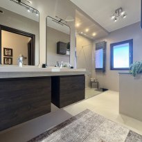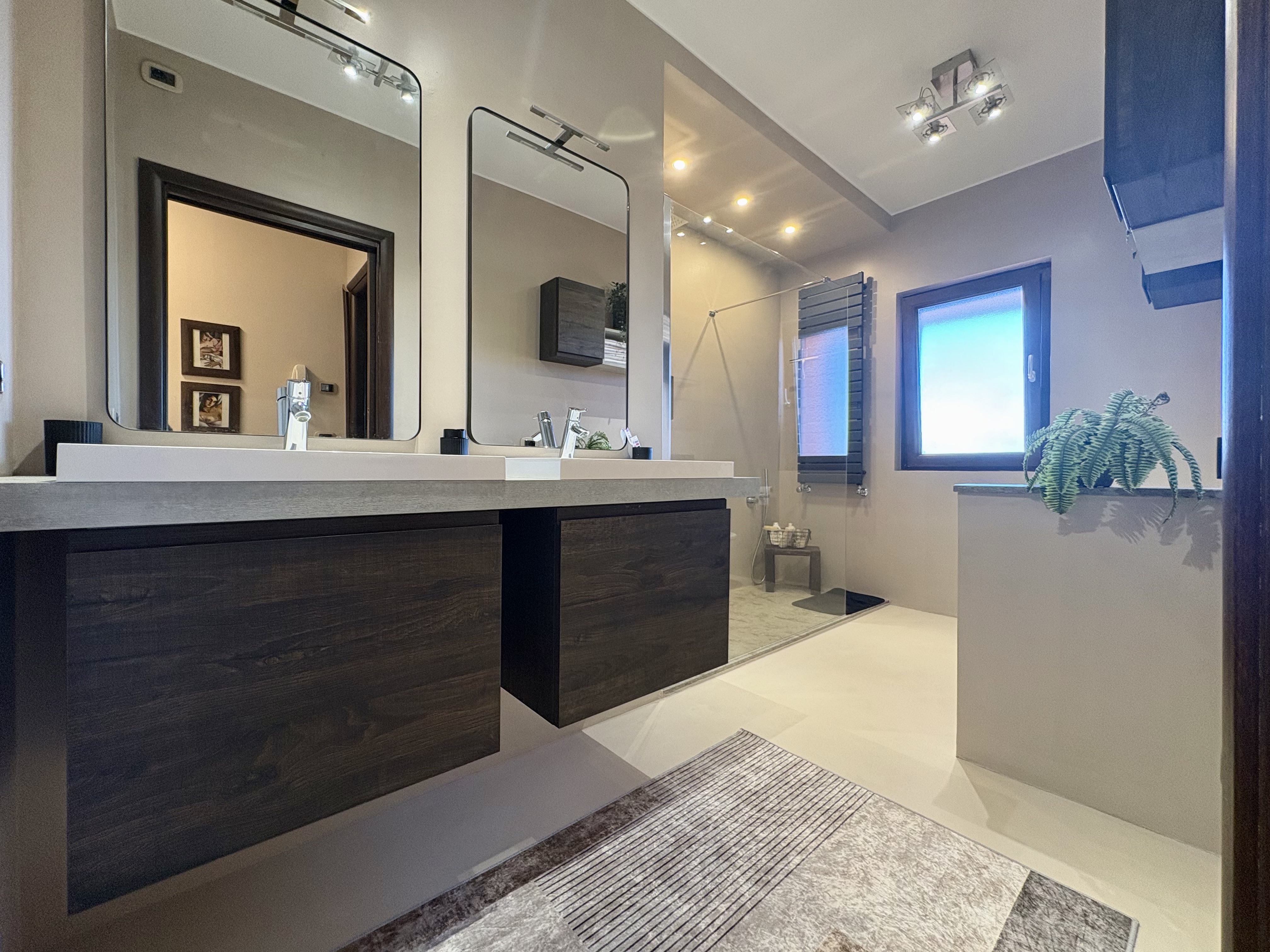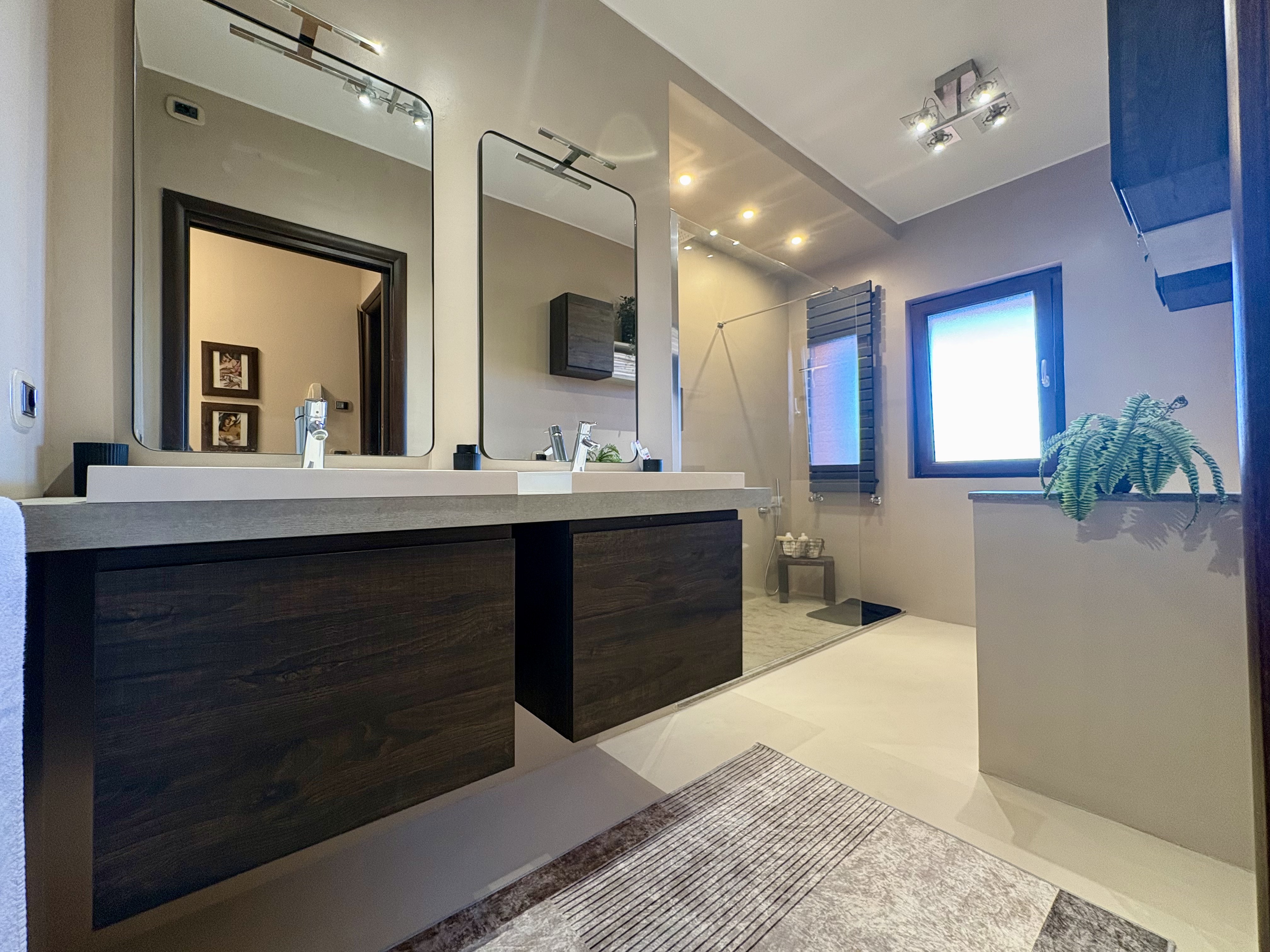 Bagno di lusso con finiture in resina e cemento di alta qualità