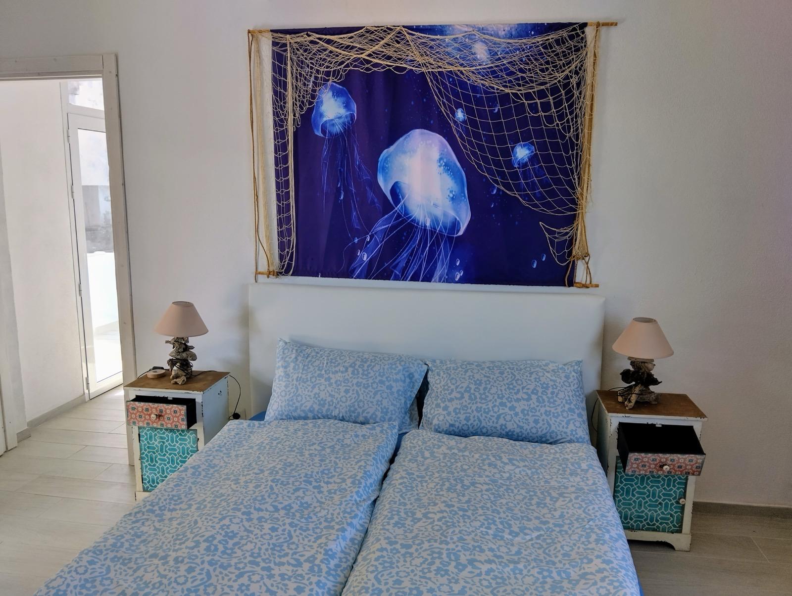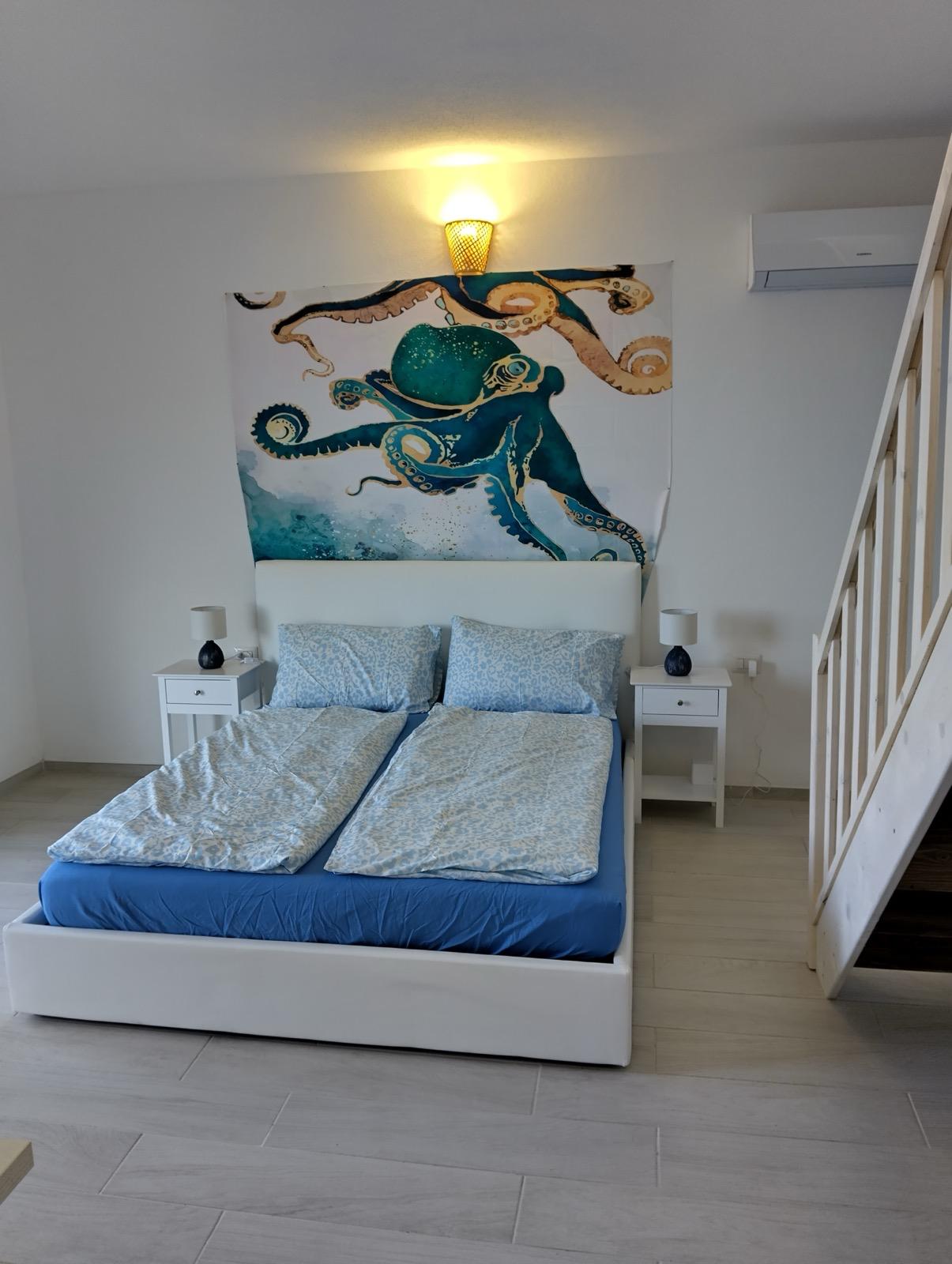 Il piano notte si sviluppa su due livelli e offre comfort e privacy. Con due spaziose camere da letto matrimoniali e un'ulteriore camera con letti a castello, questa proprietà è ideale per famiglie e ospiti. I colori neutri e l'arredamento minimalista aumentano la sensazione di tranquillità e di connessione con la natura.