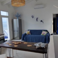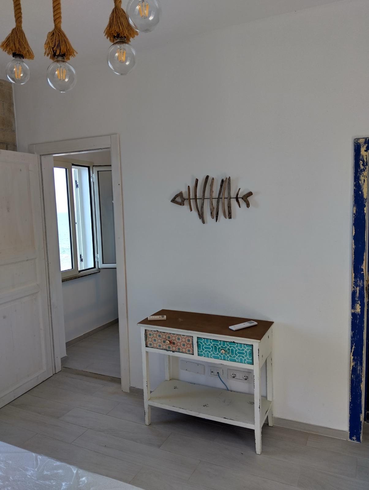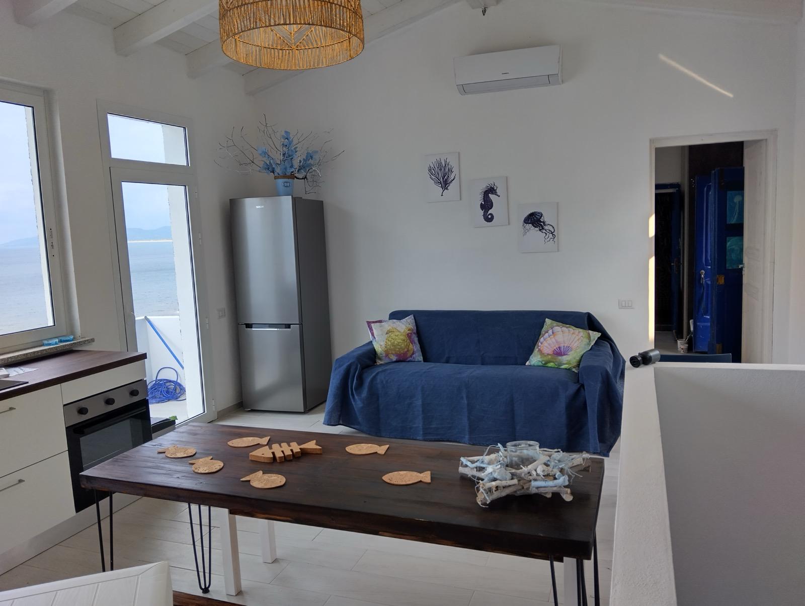 Completamente ristrutturata nel 2024, la proprietà è in uno stato di nuova costruzione. Gli interni, luminosi e ariosi, sono stati progettati per sfruttare al meglio l'esclusiva posizione sul mare. Il soggiorno al piano superiore, con travi bianche a vista e un'ampia porta scorrevole panoramica, incornicia il mare come un quadro vivente. Anche la moderna cucina si affaccia direttamente sul blu del Mediterraneo, rendendo speciali anche i momenti quotidiani.