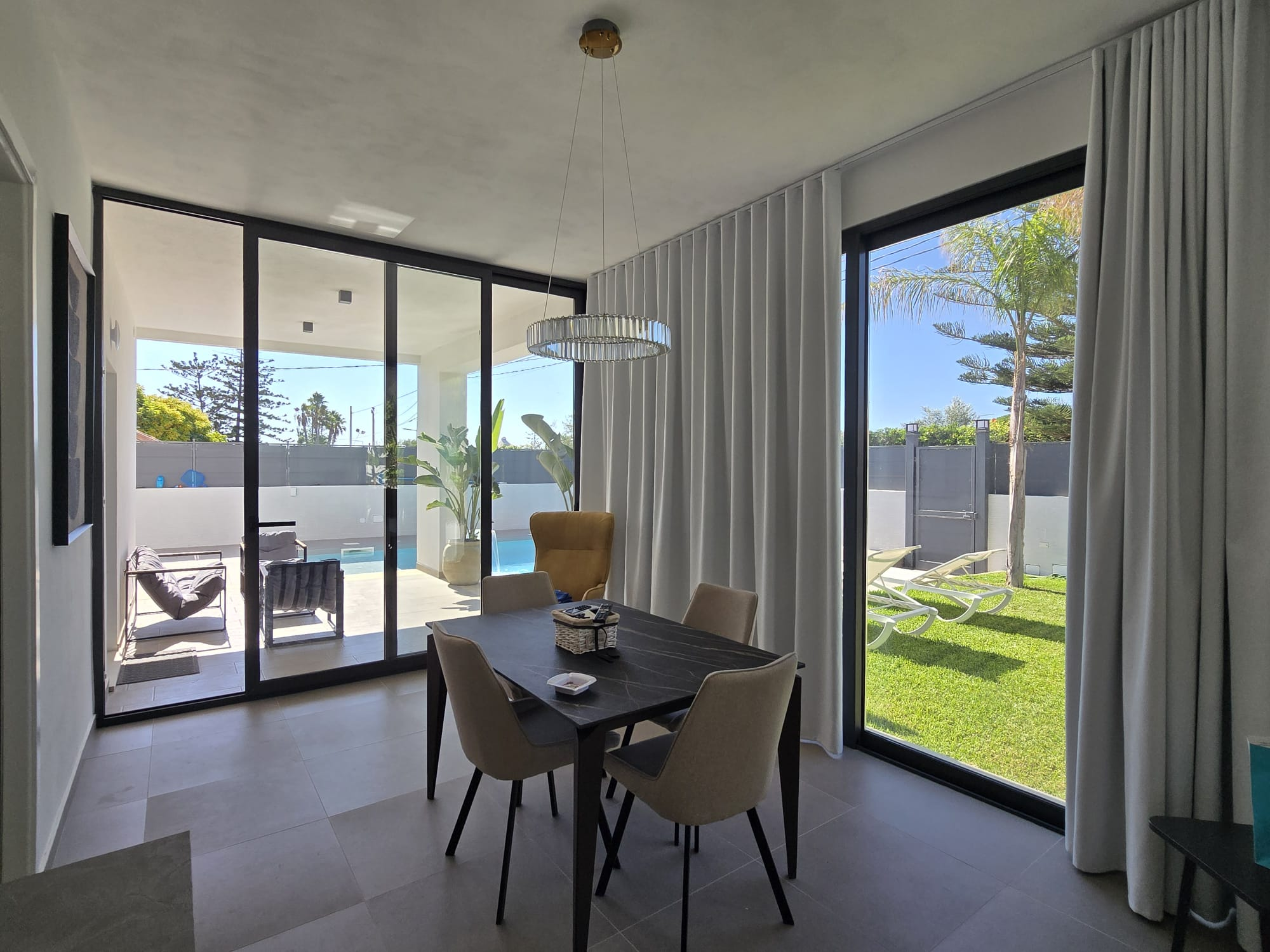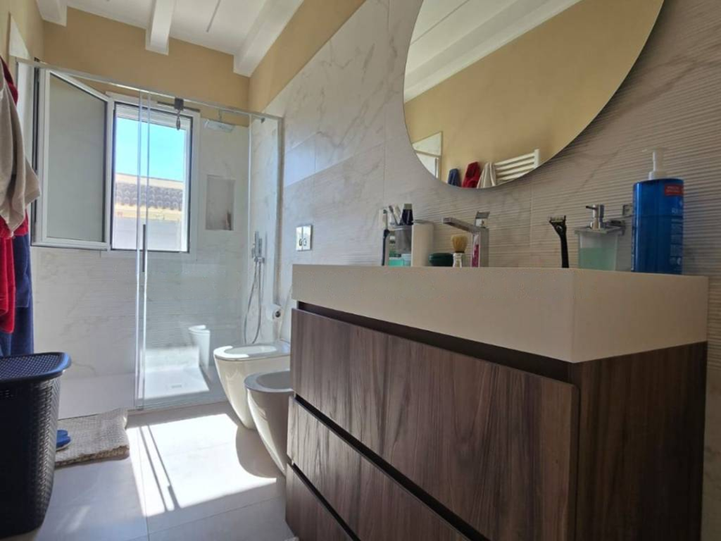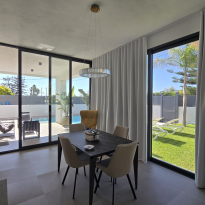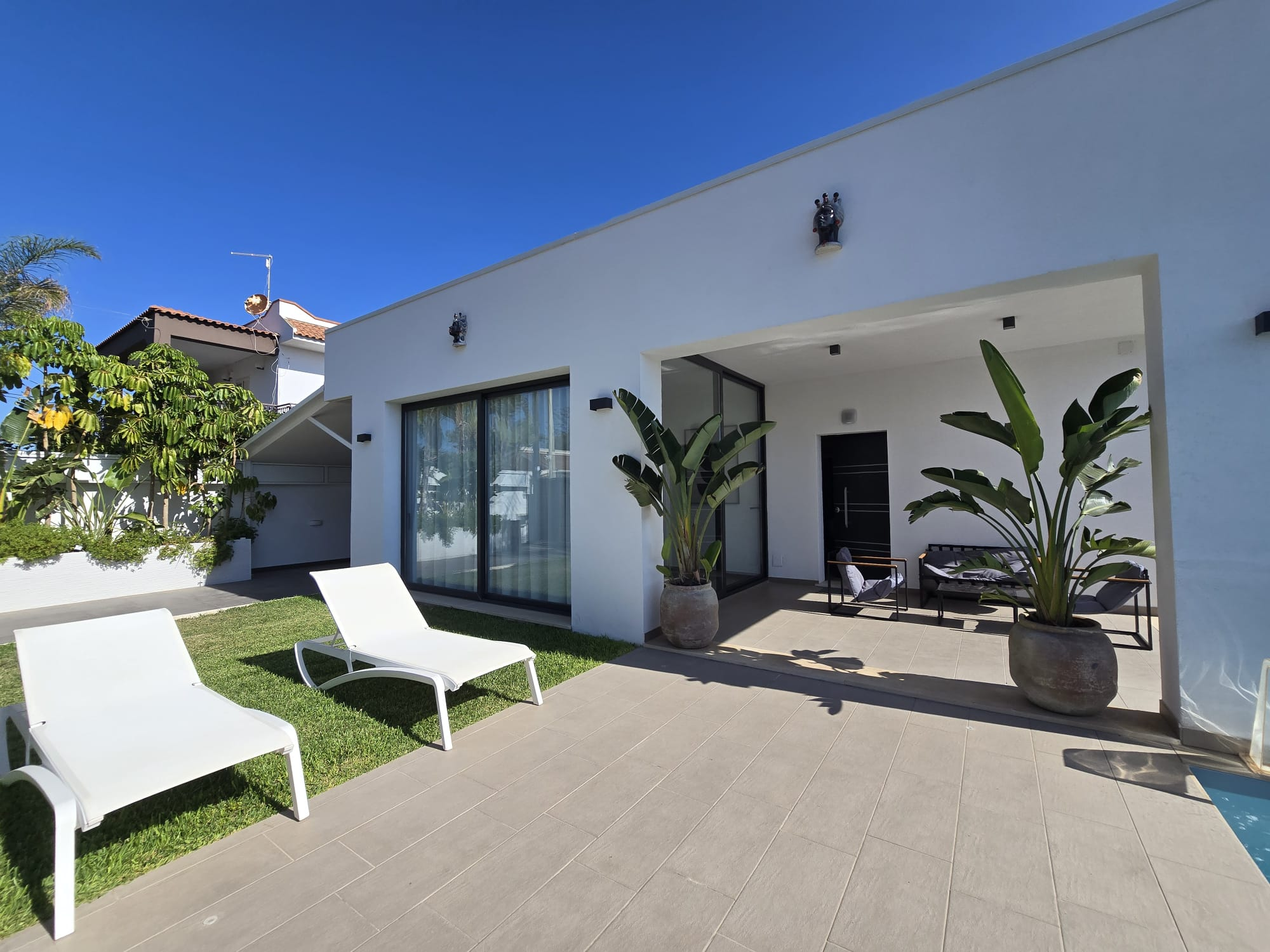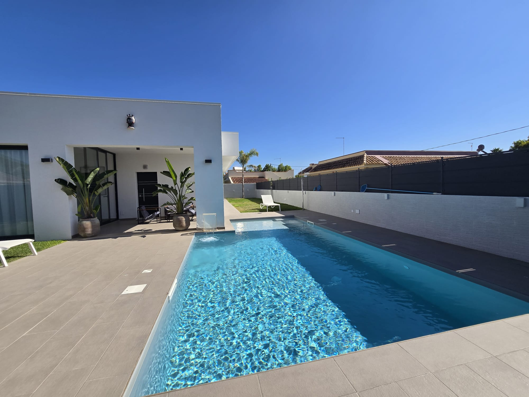 Esclusiva villa a Siracusa a soli 500 metri dalla spiaggia. Pronta a ricevere gli ospiti che vogliono godersi il Mar Ionio a Siracusa con stile. Caratteristiche principali: ampia cucina e soggiorno con molta luce, veranda in vetro con sala da pranzo e vista sulla piscina - seconda veranda aperta con vista diretta sulla piscina. La piscina con idromassaggio è circondata da un solarium soleggiato. La villa dispone di 2 camere da letto, di cui una con cabina armadio e bagno privato. La lavanderia è integrata nella cucina. C'è anche un annesso di 30 m² da utilizzare come casa per gli ospiti, studio o sala hobby. Parcheggio coperto per 5 auto. Dalla terrazza panoramica di oltre 140 m² si gode di una vista mozzafiato sul mare. La villa è dotata di mobili ed elettrodomestici di design habitat moderni e confortevoli. Tutte le stanze sono progettate e rifinite secondo uno standard elevato per il massimo comfort. La casa si trova in una zona residenziale tranquilla ed elegante. Un investimento vantaggioso sia come residenza principale di lusso sia per l'affitto come casa vacanze in una delle località balneari più famose della Sicilia.