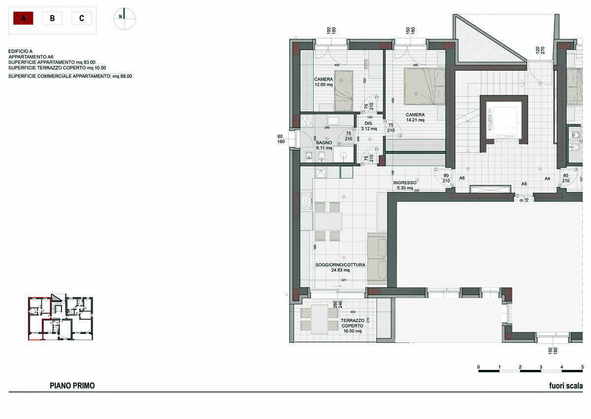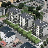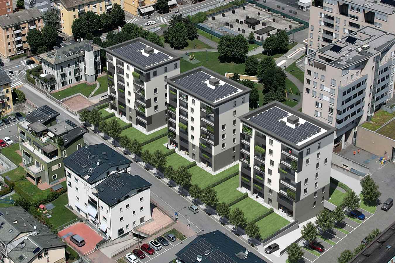 L’intervento immobiliare si compone di tre edifici di sette piani fuori terra con appartamenti di varie metrature, tutti con ottima vista ed esposizione sud.